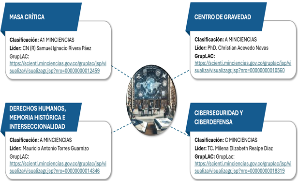 Así mismo la ESDEG cuenta con cuatro (04) grupos de investigación y cuatro (04) centros de investigación que combinan perspectivas transdisciplinarias en la construcción de conocimiento.
