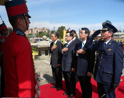 Con la presencia del excelentísimo señor Embajador de la República de Corea, Hong Song Ha; dos representantes del Congreso Coreano, doctores Kim Jung Hoon y Kim Song Sik; el Subdirector de la Escuela Superior de Guerra, brigadier general Carlos Eduardo Montealegre Rodríguez, y los oficiales de planta del Instituto, se llevó a cabo frente al monumento de La Pagoda, una ofrenda floral en reconocimiento a los héroes caídos en acción en la Guerra de Corea.